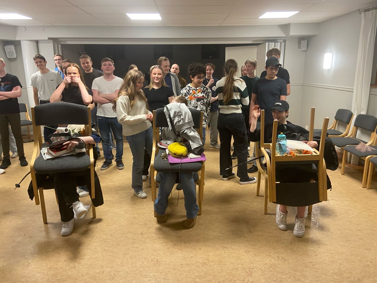 Zaterdagmiddag waren we aanwezig bij de tienergroep, we hoefden niks voor te bereiden, maar gewoon aanwezig te zijn en meedoen met de activiteiten. We gingen in verschillende groepen en elke groep kreeg een lijst met opdrachten. Deze opdrachten moesten we dan in anderhalf uur uitwerken en op de foto zetten.